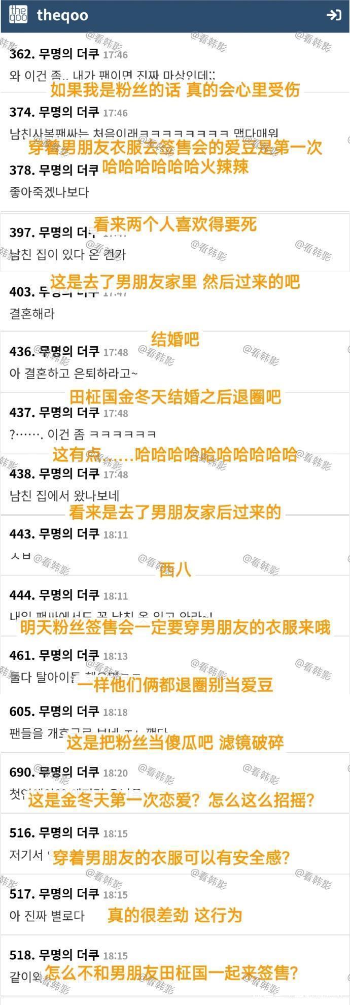 所以,现在大家认定了金冬天和田柾国就是谈恋爱,所以想当然的觉得金冬天穿田柾国的裤子和拖鞋去粉丝签售会很正常,其实,细想一下,这是不太可能的,要知道韩流娱乐公司对艺人的管控是很严格的,尤其是有行程的情况下,是绝对不允许艺人在不确定的地方过夜的,这一点,大家稍微了解一下,就会非常的清楚。
